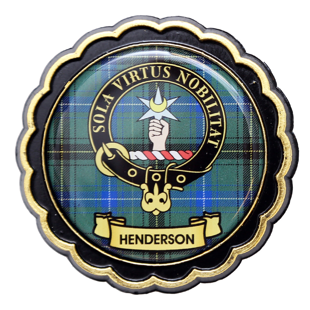 • Rubber clan crest fridge magnet featuring your clan name, tartan, crest, and motto.